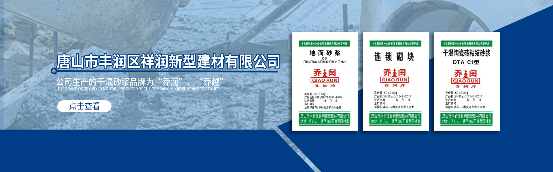 唐山市豐潤(rùn)區(qū)祥潤(rùn)新型建材有限公司成立于2019年,地處豐潤(rùn)區(qū)102國(guó)道菜園村南,交通便利,公司占地約8000平方米我公司主要生產(chǎn)設(shè)備有砂漿攪拌機(jī)5套,公司生產(chǎn)的干混砂漿品牌為“喬潤(rùn)”、“喬越”,干混砂漿型號(hào)有:砌筑砂漿、抹灰砂漿、地面砂漿、保溫砂漿、抗裂砂漿、防水砂漿、陶瓷磚粘結(jié)砂漿、連鎖砌筑專(zhuān)用砂漿、界面劑等,砂漿產(chǎn)品性能穩(wěn)定,公司與中國(guó)鐵道建筑有限公司、上海建工集團(tuán)、中國(guó)建筑工程總公司,中國(guó)交通建設(shè)集團(tuán)有限公司等企業(yè)長(zhǎng)期保持著良好的合作關(guān)系。